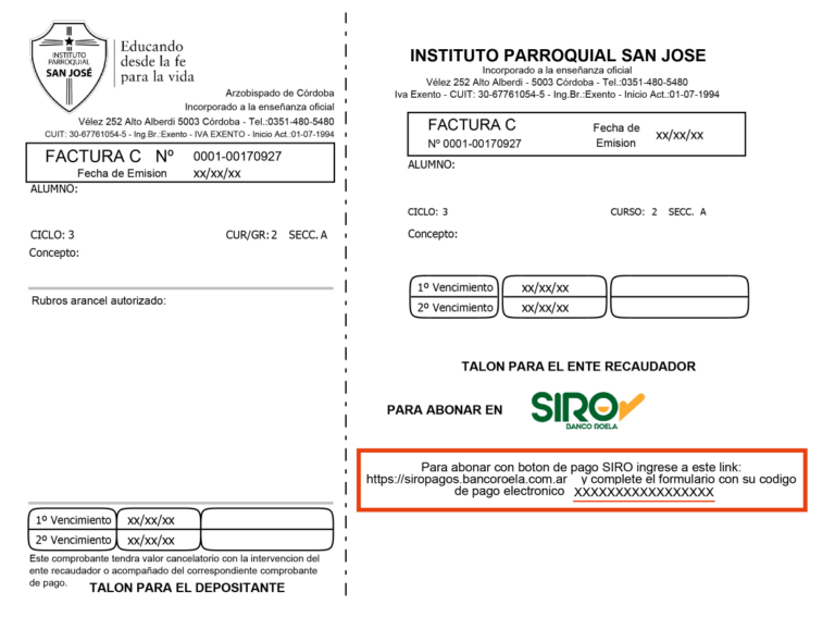 El Instituto Parroquial San José es una Institución educativa de gestión privada. Las familias que eligen libremente esta escuela para la educación de sus hijos integran la comunidad educativa y se comprometen a asumir como propios los objetivos y proyecto educativo, la identidad católica, el ideario institucional y las normas de convivencia y reglamentos del Instituto. Los servicios educativos que presta el Instituto son arancelados conforme la legislación vigente. Los aranceles son autorizados por el organismo oficial de control, Dirección General de Institutos Privados de Enseñanza (D.G.I.P.E.) y comunicados a las familias mediante circulares contables. Los aranceles no incluyen documentación del estudiante, uniformes, material de estudio, apuntes, fotocopias, impresiones de tareas, actividades especiales (intertribus, obras de teatro, títeres, etc.) ni salidas educativas. Los padres y/o tutores asumen al matricular al estudiante el compromiso del pago en tiempo y forma de los aranceles.